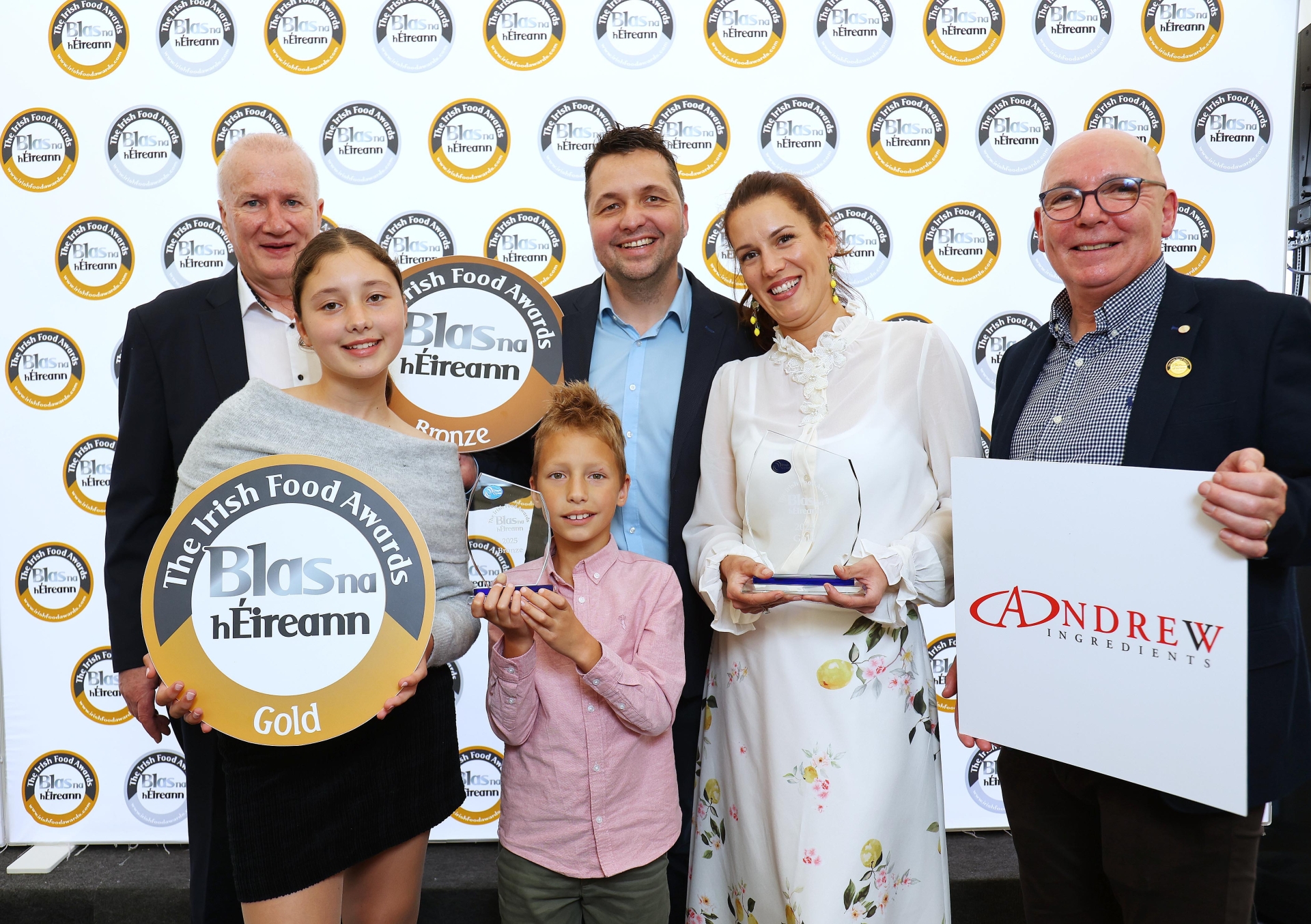 John Sheehy, Blas na hÉireann, Zsofia Turmezei, of Sophie’s Creations, and family, with sponsor Colin Lavery of Andrew’s Ingredients. Photo: Andrew Watchorn
