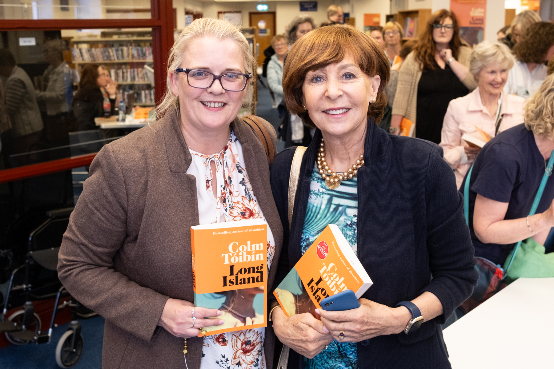 Claire Bridle from Ballymacarbry and Monica Harper from Abbeyside pictured at Dungarvan Library for internationally acclaimed Irish author Colm Toibin in conversation with Mary Conway, Interim County Librarian and Head of Culture .