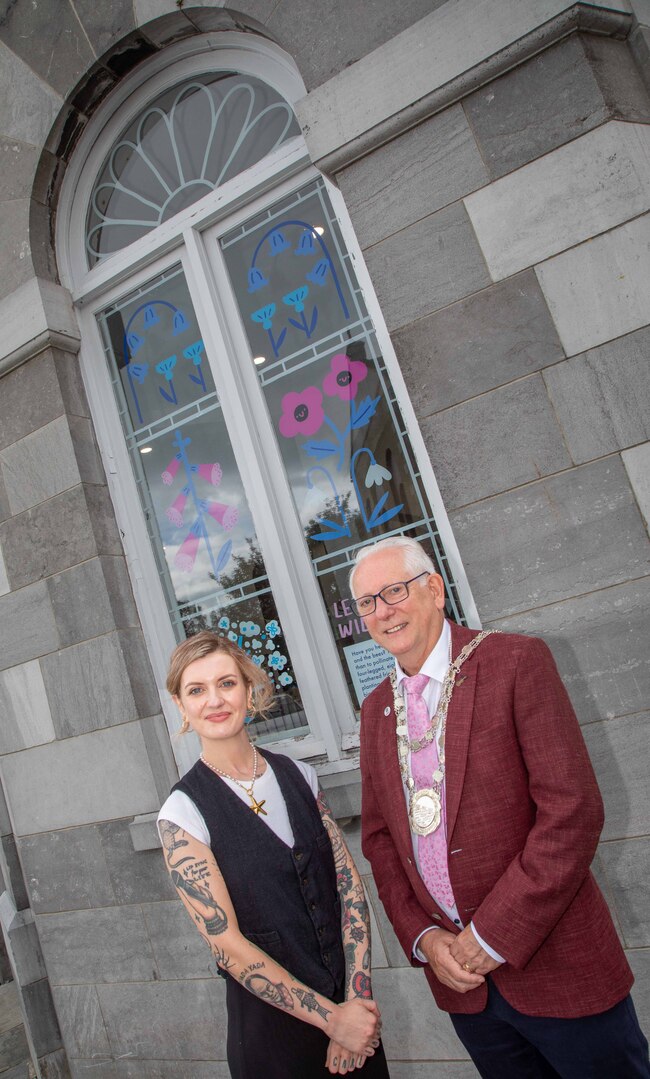 Kathi created the artwork in collaboration with Waterford's Central Library and Waterford City and County Council's Climate Action Team which is now displayed in six windows of the library.