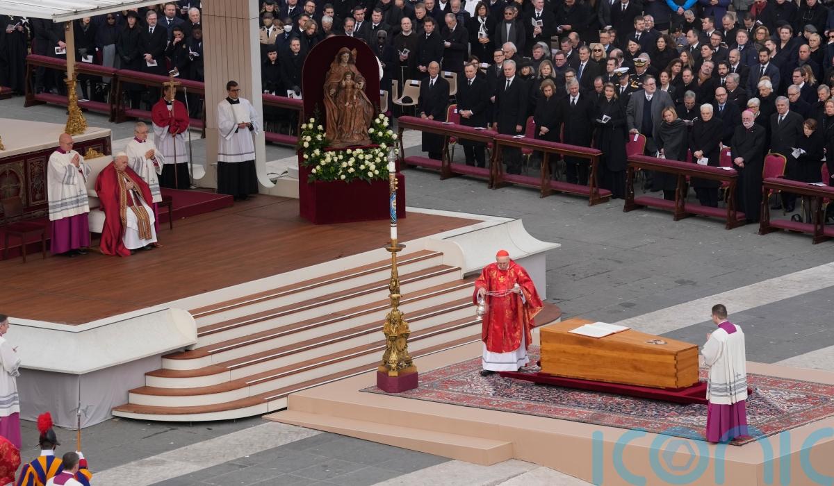 Thousands of mourners gathered in St Peter’s Square in Vatican City on Thursday for the rare event of a requiem Mass for a dead pontiff, presided over by a living one, Pope Francis.