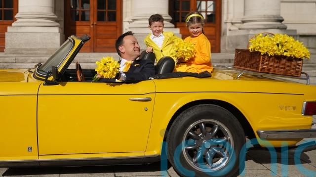 The flowers were delivered in a classic daffodil yellow 1969 Triumph TR6 sports car by the charity’s chief executive, Averil Power, alongside five-year-old Patrick Breen, from Balally, and six-year-old Nora Forde, from Sandyford.