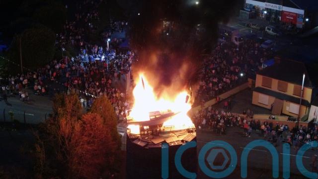 The bonfire, titled “No Irish Sea Border Bonfire”, was lit around 11pm following a parade and an address by loyalist activist Jamie Bryson.