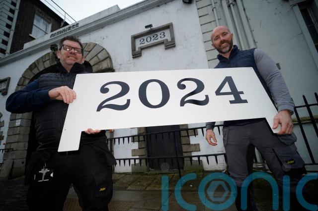 To ensure there are “no hiccups”, the pair get the metal sign earlier in the evening, take the old sign down and put the new one up. They cover it over with the old sign and then, at midnight, they pull it aside for the big reveal.