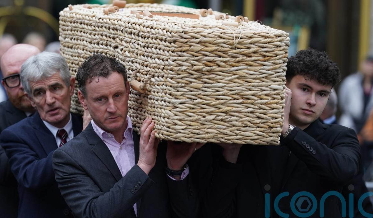 Members of the broadcaster’s family, including his beloved dog Tiger, walked behind Bird’s coffin as it was carried into the building ahead of the memorial event.