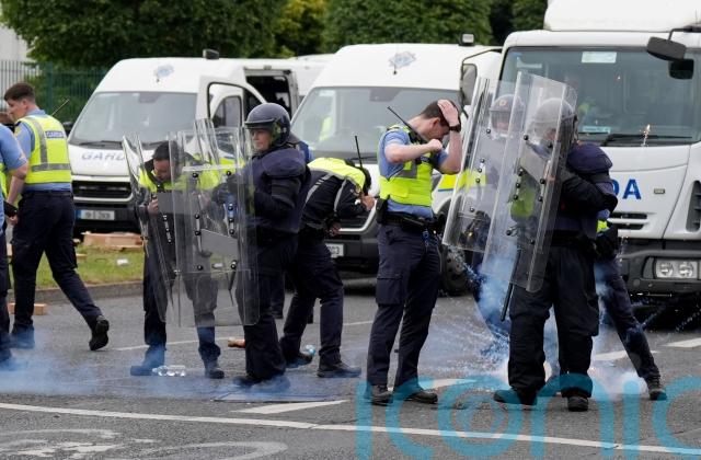 A number of Garda cars were damaged during the disturbances and public order officers used incapacitant spray on anti-immigration protesters who threw missiles at them.