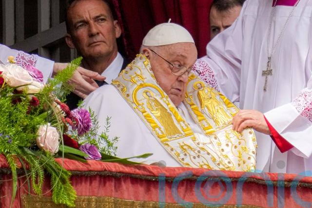 The pontiff had delegated the celebration of the Easter mass to another cardinal but after it ended, he appeared on the loggia balcony over the basilica entrance for more than 20 minutes as the Urbi et Orbi blessing was imparted.