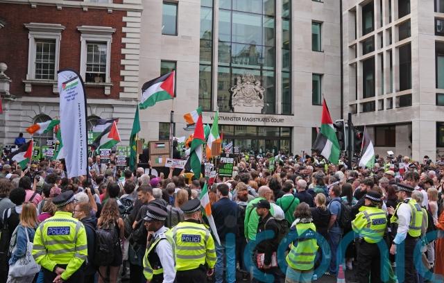 The Metropolitan Police imposed conditions limiting where the demonstration outside the court could take place, saying they were needed to “prevent serious disruption”.