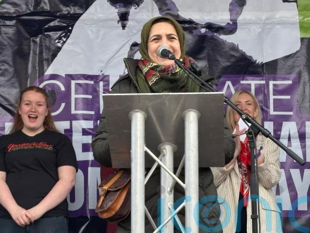 Ms Robinson said she was delighted to mark International Women’s Day in the Northern Ireland capital alongside speakers including Iranian human rights activist and academic Azadeh Sobout, Helen Crickard from Reclaim the Agenda and Aoife Nic An Tuile from Youth Action.