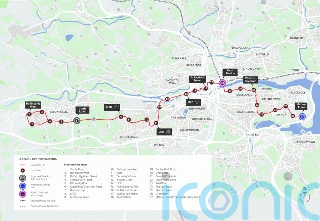 The plan for Luas Cork includes up to 27 stops running from Ballincollig to Mahon Point.