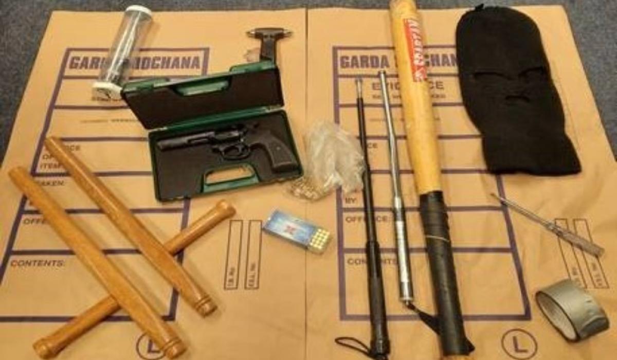 Ammunition, an extendable baton, and a balaclava were discovered. A follow-up search was conducted at a residential property in Dublin 11 which resulted in the seizure of a firearm, an extendable baton, baseball bat, and other items.