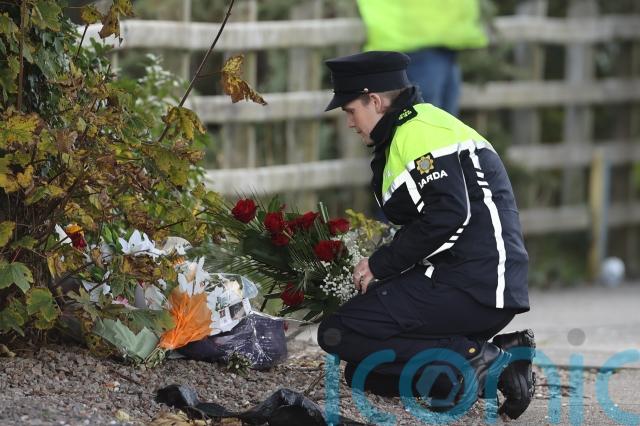 Friends and family members of those killed in the blast stood metres from the Applegreen shop and handed over floral tributes to waiting Garda members.