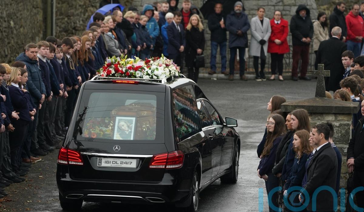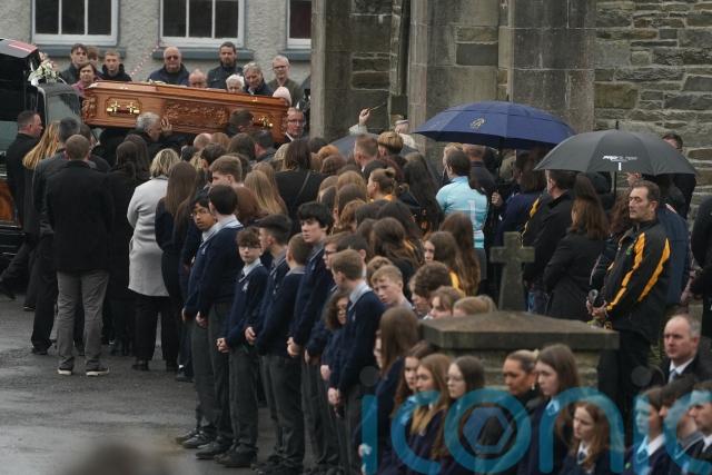 A red tractor formed part of the funeral procession as it made its way to St Mary’s Church in Ramelton, while members from Ms Harper’s school and rugby club lined the streets.