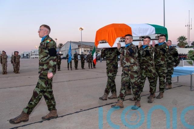 The 23-year-old’s remains left Beirut Airport on an Irish Air Corps Casa plane on Sunday afternoon after a solemn UN ceremony was held to honour the soldier ahead of his journey home.