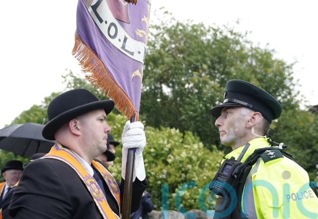 Orange Order members on Sunday held a short protest at the police lines barring them from the return route.