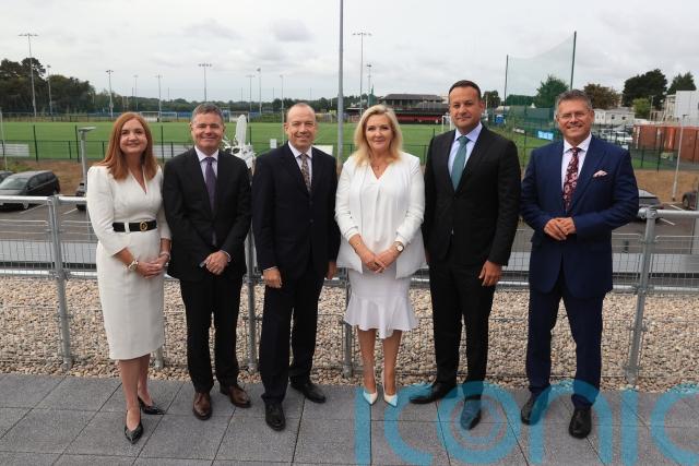 Irish premier Leo Varadkar, Mr Sefcovic and Secretary of State for Northern Ireland Chris Heaton-Harris met at the recently opened site of the Peace IV shared space redevelopment project, the Newforge Sports Centre in South Belfast, to launch the funding.