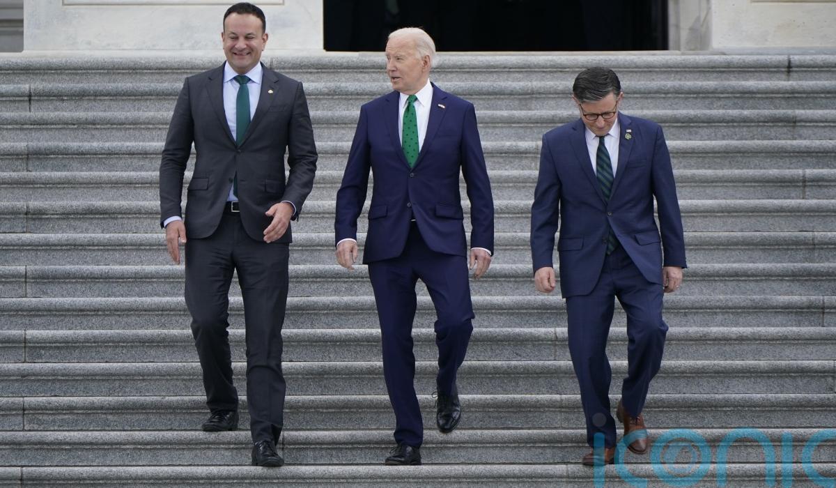 During the annual Friends of Ireland Luncheon hosted by Speaker Mike Johnson on Capitol Hill in Washington DC, Mr Biden invited Michelle O’Neill and Emma Little-Pengelly to stand up for applause throughout the room.