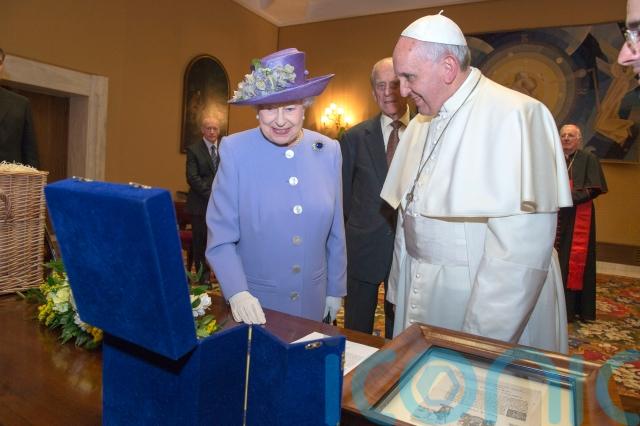The late Queen met Pope Francis in 2014 at the Vatican, when he gave her eight-month-old great-grandson Prince George a lapis lazuli orb decorated with a silver cross of Edward the Confessor, the 11th century English king who was made a saint.