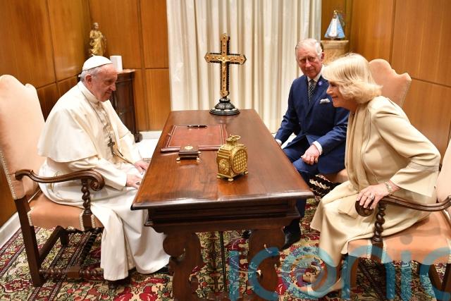The Pope urged Charles to work to bring peace in the world, telling him “Wherever you go, may you be a man of peace”, with the prince replying “I’ll do my best”.