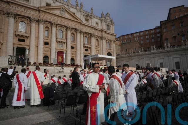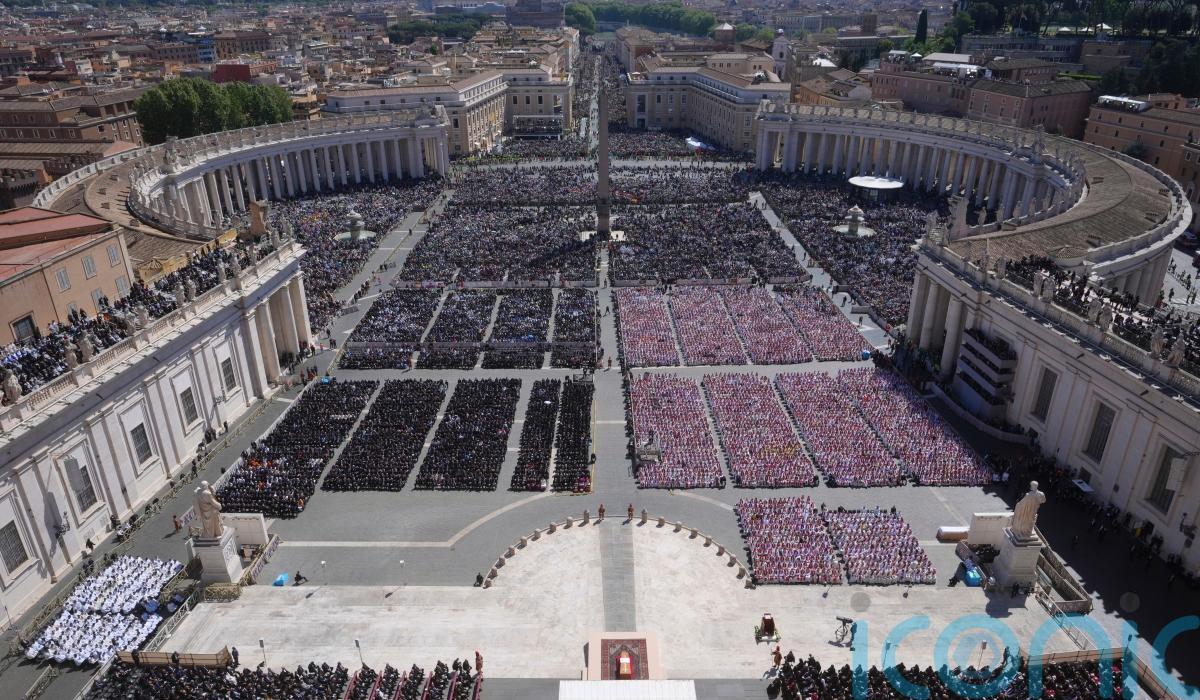 He was joined by Ireland’s Taoiseach Micheal Martin and Tanaiste Simon Harris inside the great church, before the Irish delegation headed out into St Peter’s Square to take their seats.