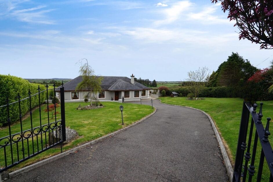 This impressive detached bungalow, extending to approximately 225 sq.m (2,422 sq.ft), is set on a substantial site of circa 0.59 acres and enjoys beautiful overland views in Carrickphilip. It comes to the property market for €500,000.