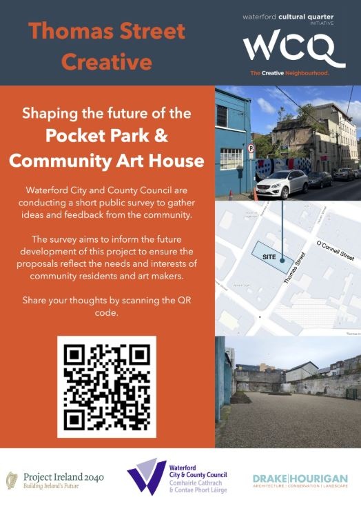 With the Waterford public's input, Waterford City and County Council says it aims to create a community space, comprising Pocket Park and Community Art House, that will best serve the needs and interests of those who live, work and play in the area.