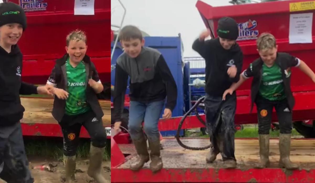 WATCH: Young lads make the most of the mud at Ploughing 2023